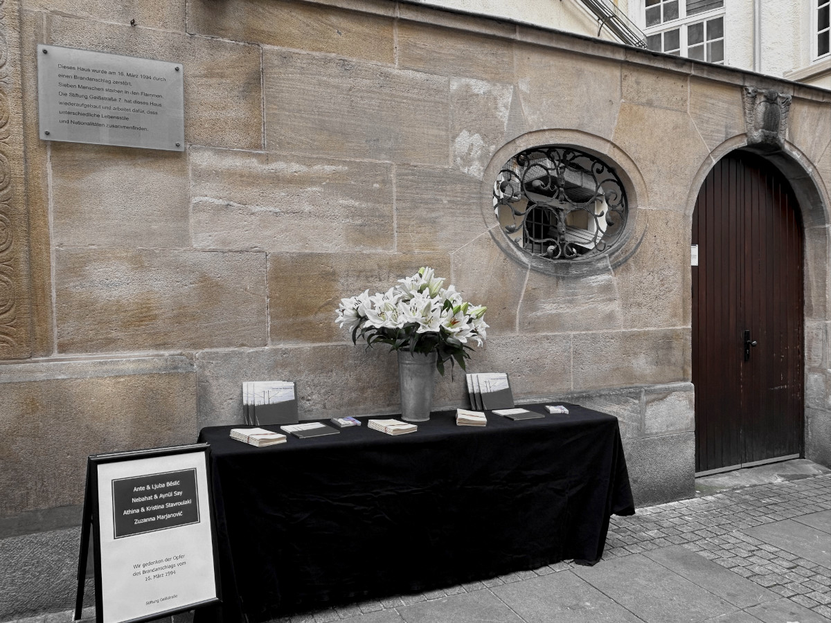 Die Stiftung Geißstraße hält das Schicksal der Getöteten, der Verletzten und Traumatisierten in Erinnerung, indem sie Menschen aus aller Welt freundlich im wieder errichteten Brandhaus aufnimmt.